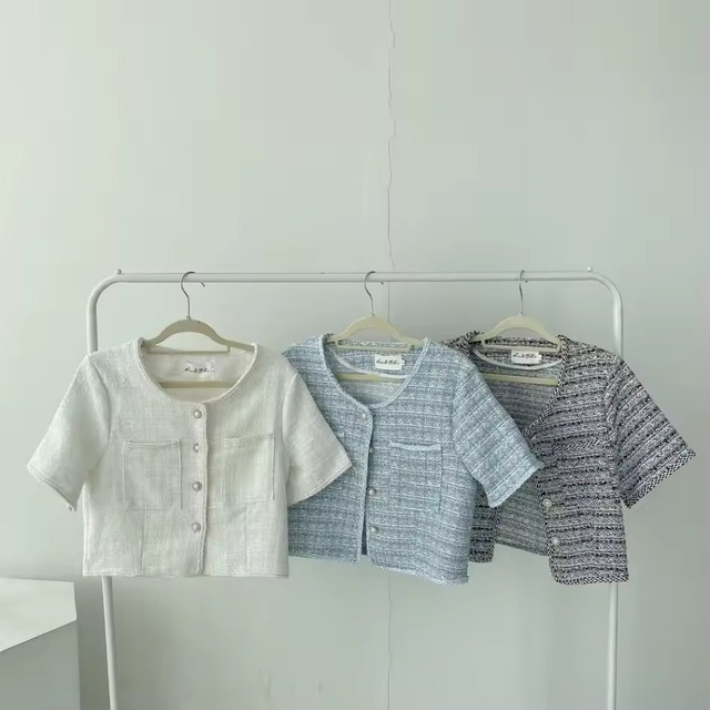 御来店ありがとうございます♡ 公式LINE【happy cheek】にて割引クーポンをお配りしております♪ お問い合わせなどもLINEからしていただけます♪ ↓↓↓ https://lin.ee/2f7h1yh 【@890kdgtg】 立体感のあるツイード風の素材にほんのりラメを織り交ぜた華やかなショートジャケット。 パールボタンとノーカラーデザインが、大人フェミニンな雰囲気を演出。 コンパクトなシルエットできちんと感がありながら、動きやすい。 キャミソールやタンクトップと合わせて、抜け感のあるきれいめスタイルに。 ◆カラー ブラック・アイボリー・ライトブルー 3色展開 ◆サイズ M 着丈44cm バスト84cm 肩幅35cm 袖丈20cm ゆき37.5cm 身幅42cm L 着丈45cm バスト90cm 肩幅37cm 袖丈21cm ゆき39.5cm 身幅45cm 透け感なし 伸縮性なし 裏地なし ◆素材 ポリエステル70% 綿30% 【発送について】 当店は3日〜15日営業以内に発送させていただきます。 メーカーから取り寄せや商品発送が遅れる場合はご連絡させていただきます。 【注意】 濃色製品は着用時の摩擦等により色移りすることがあります。 湿った、あるいは濡れた状態で着用すると色移り・色落ちすることがあります。 お使いの端末や閲覧環境により、写真と実物の色味や質感が多少異なって見えることがございます ご注文後のサイズ・カラーの変更は承ることが致しかねます。 お申し込みの際にはサイズ・カラー等をご確認の上、ご注文な程よろしくお願いします。 〜〜〜〜〜〜〜〜〜〜〜〜〜〜〜〜〜〜〜〜〜〜〜〜 白 オフホワイト 青 サックス 灰色 黒 レディース トップス カットソー Tシャツ ティーシャツ プルオーバー 半袖カットソー 半袖Tシャツ ビッグTシャツ ビッグT オーバーTシャツ オーバーT ビッグTee オーバーTee Tee ロングTシャツ ロングT ロンT ロンTee ロンティー ロング ロング丈 シンプルTシャツ シンプルT シンプルTee チュニック丈 チュニック 長め 半袖 半そで 五分袖 5分袖 二の腕カバー 丸首 クルーネック ラウンドネック 大きいサイズ 大きい 大きめサイズ 大きめ ビッグシルエット オーバーサイズ ゆったり 楽ちん 楽チン 体型カバー マタニティ 妊婦 妊婦服 綿混 コットン混 天竺 天竺カットソー 無地 薄手 シンプル ベーシック スタンダード カジュアル きれいめ キレイめ プチプラ プチプライス 春 春服 春物 夏 夏服 夏物 春夏 服 新作 新着 〜〜〜〜〜〜〜〜〜〜〜〜〜〜〜〜〜〜〜〜〜〜〜〜