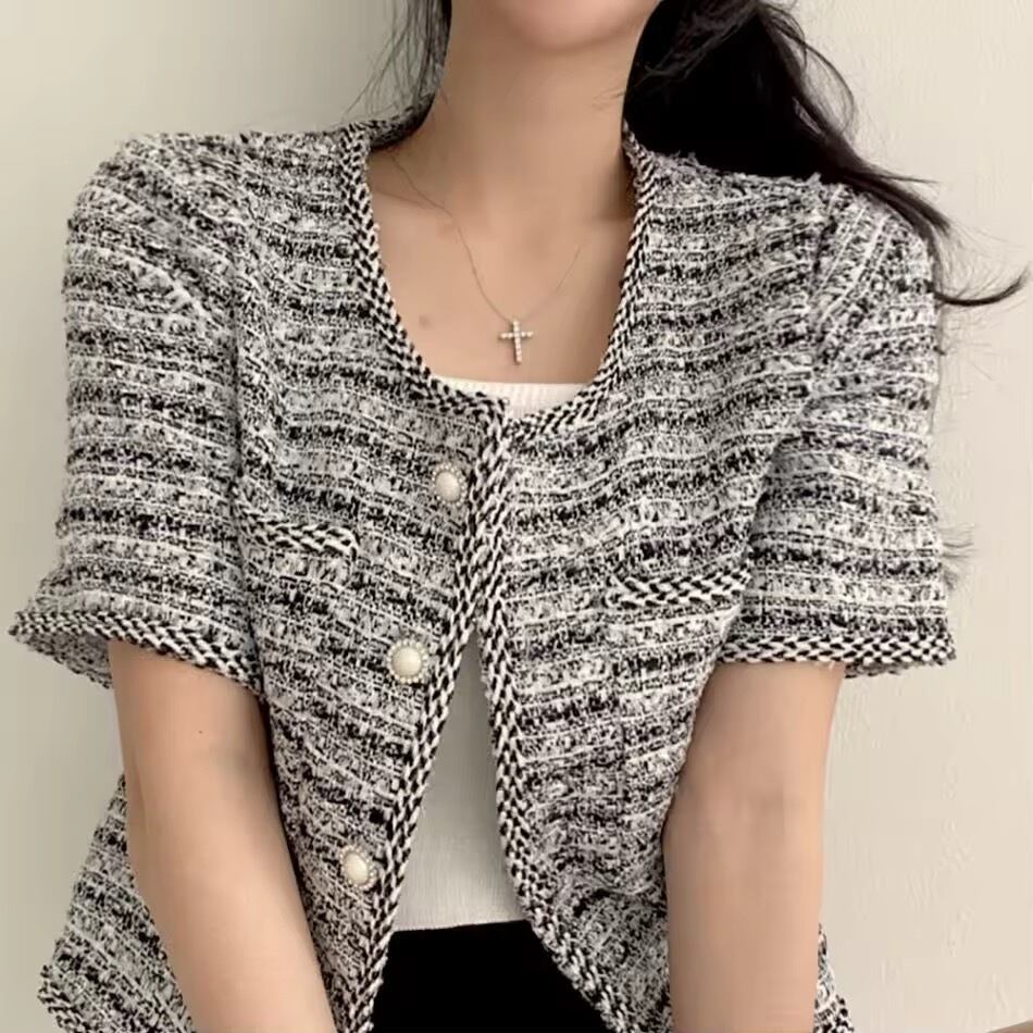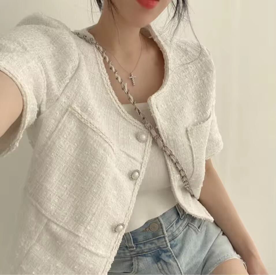 【 国内発送 t267 】レディース パールボタン オフィス夏服 ショート丈アウター フォーマル カーディガン きれいめ羽織り サマージャケット夏 上品ライトアウター 高見えジャケット 半袖羽織り 韓国風