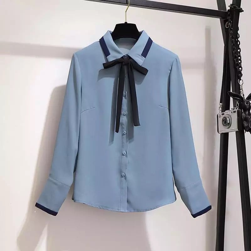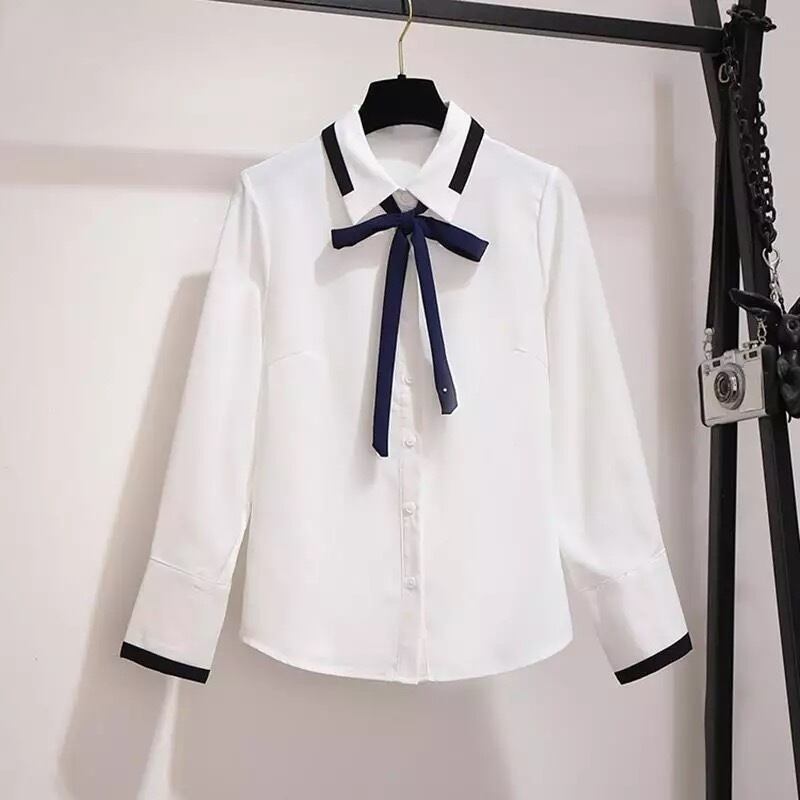 リボンタイがアクセントのブラウスシャツはきちんと感があり学校行事にもお使いいただけます◎