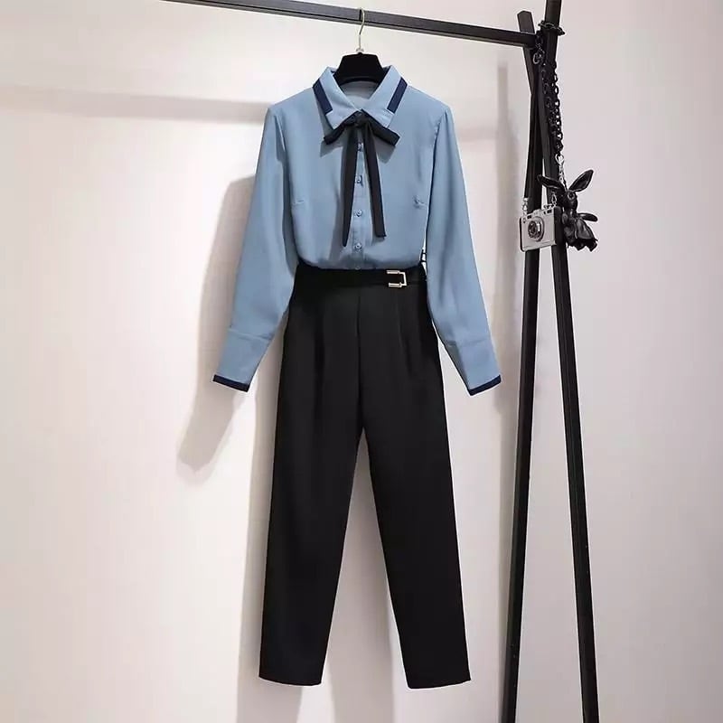 【 国内発送 s052 】パンツセットアップ セットアップ アンサンブル 2点セット ブラウス シャツ リボンタイ パンツ パンツスーツ オフィス 結婚式 二次会 パーティー シャツブラウス レディース シフォンシャツ 春秋 おしゃれ ブラウス オフィス 大きいサイズ 長袖シャツ リボン付き 通勤 OL 韓国風 トップス 着痩せ