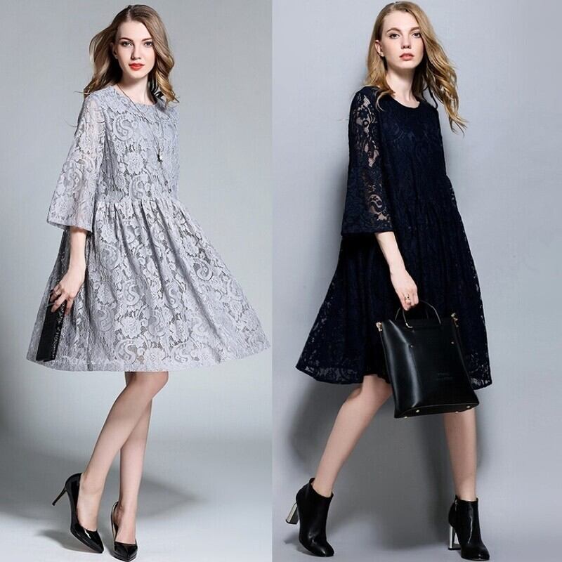 【 送料無料 国内発送 d022 】マタニティ ワンピース マタニティウェア マタニティウエア ワンピース ドレス フォーマル グレイ ブラック ひざ丈 レース 七分袖 フレア ミモレ丈ワンピース レースワンピース パーティードレス 結婚式ワンピース 結婚式ドレス 大きいサイズ