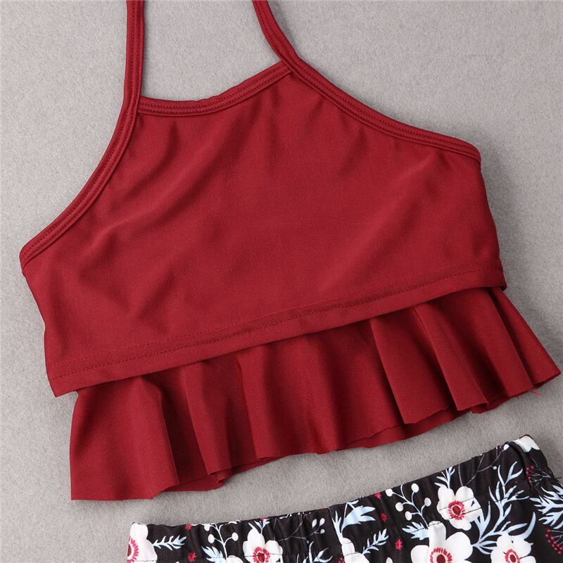 【 送料無料 国内発送 】体型カバー水着 ワンピース フリル 親子ペアルック 水着 親子お揃い キッズ 水着 ママ水着 ペアルック 可愛い おしゃれ 女の子 レディース