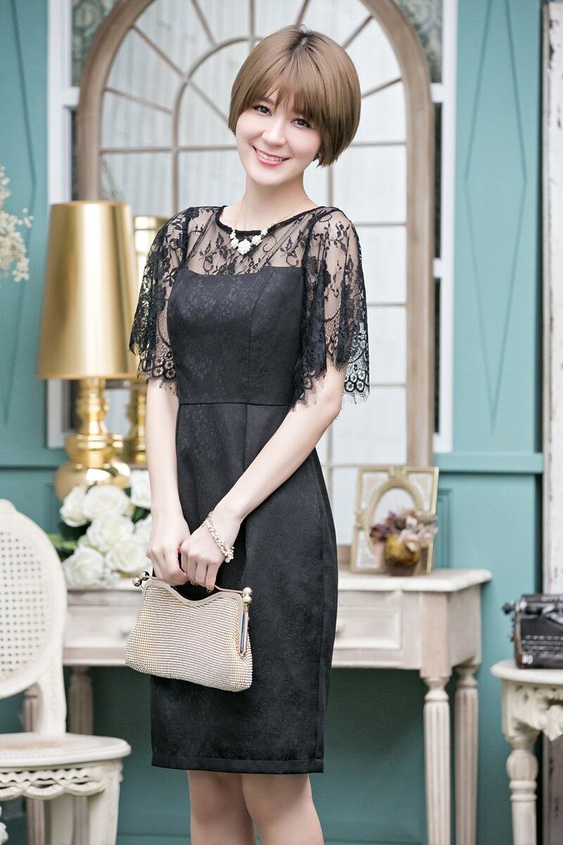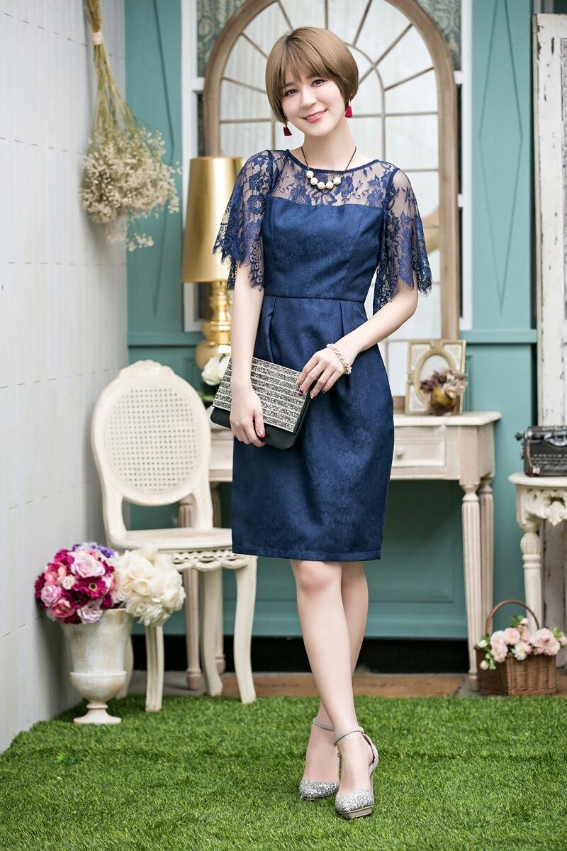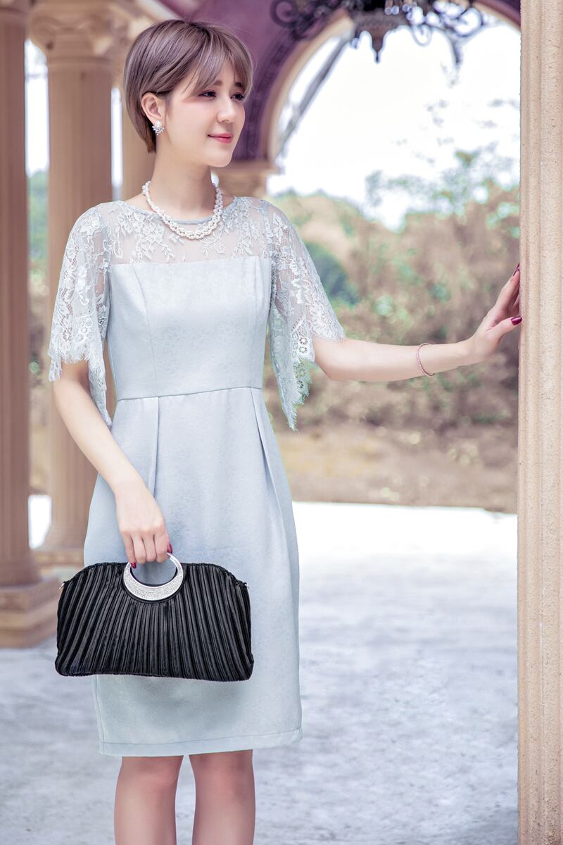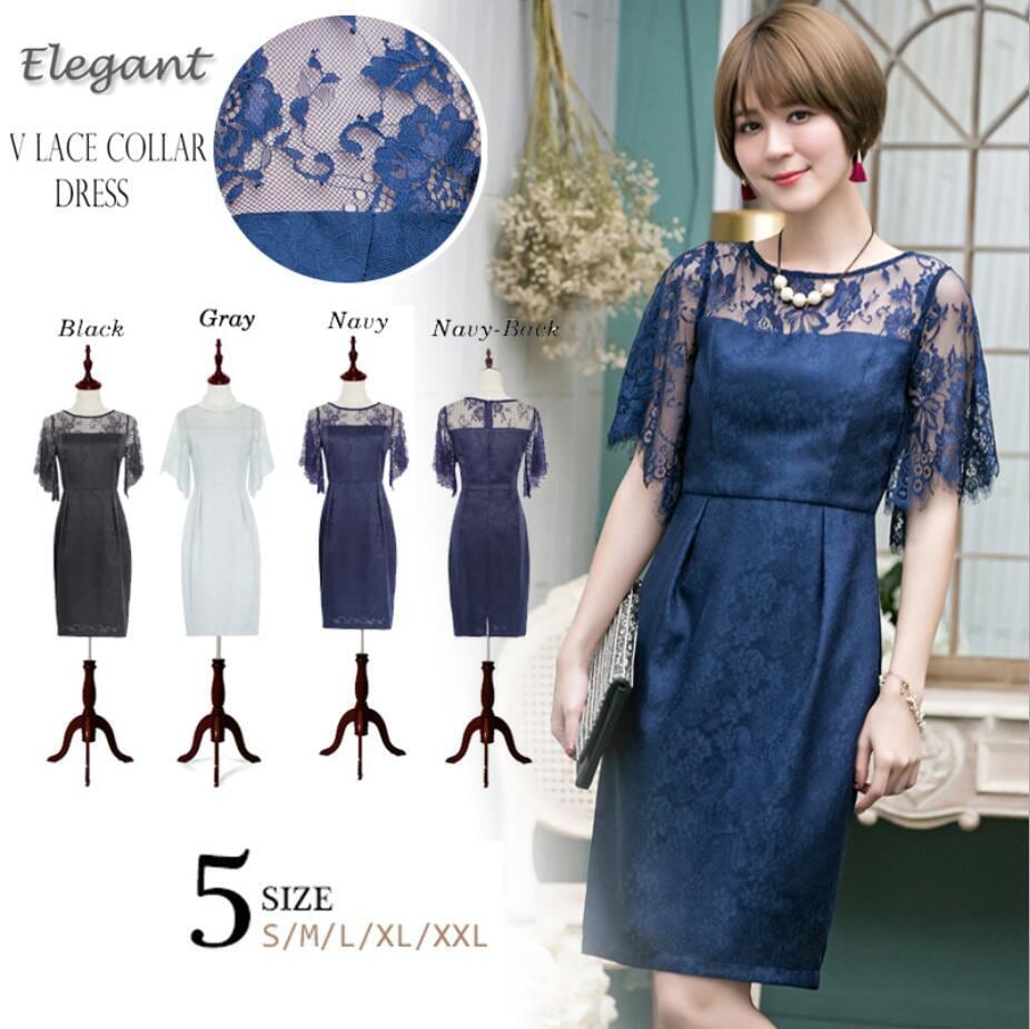 【 送料無料 国内発送 d007 】パーティードレス 結婚式 ワンピース 大きいサイズ 入学式 卒園式 母 ドレス お呼ばれ 半袖 レース 二次会 披露宴 演奏会 袖あり 体型カバー フォーマル レディース 上品 エレガント きれいめ 大人 可愛い