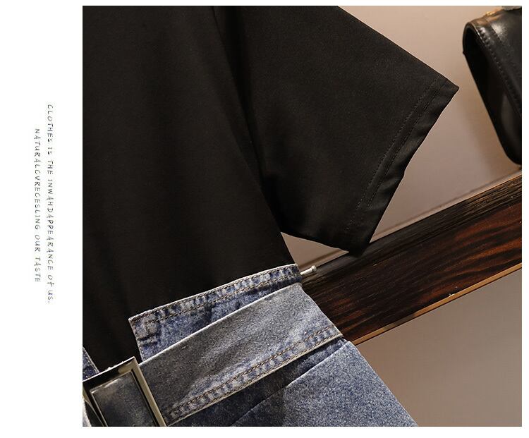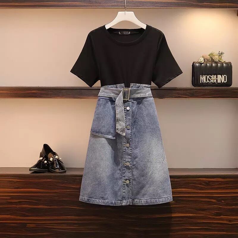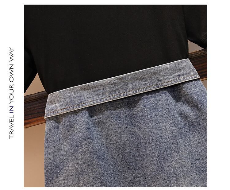 【 国内発送 大きいサイズ s001】 大きいサイズワンピース 大きいサイズレディース デニムワンピース セットアップ風 ブラック ひざ丈ワンピース デイリー