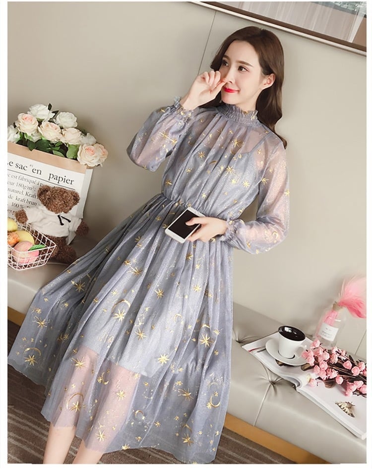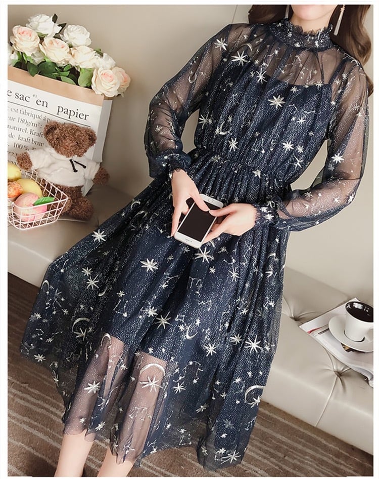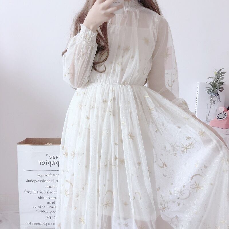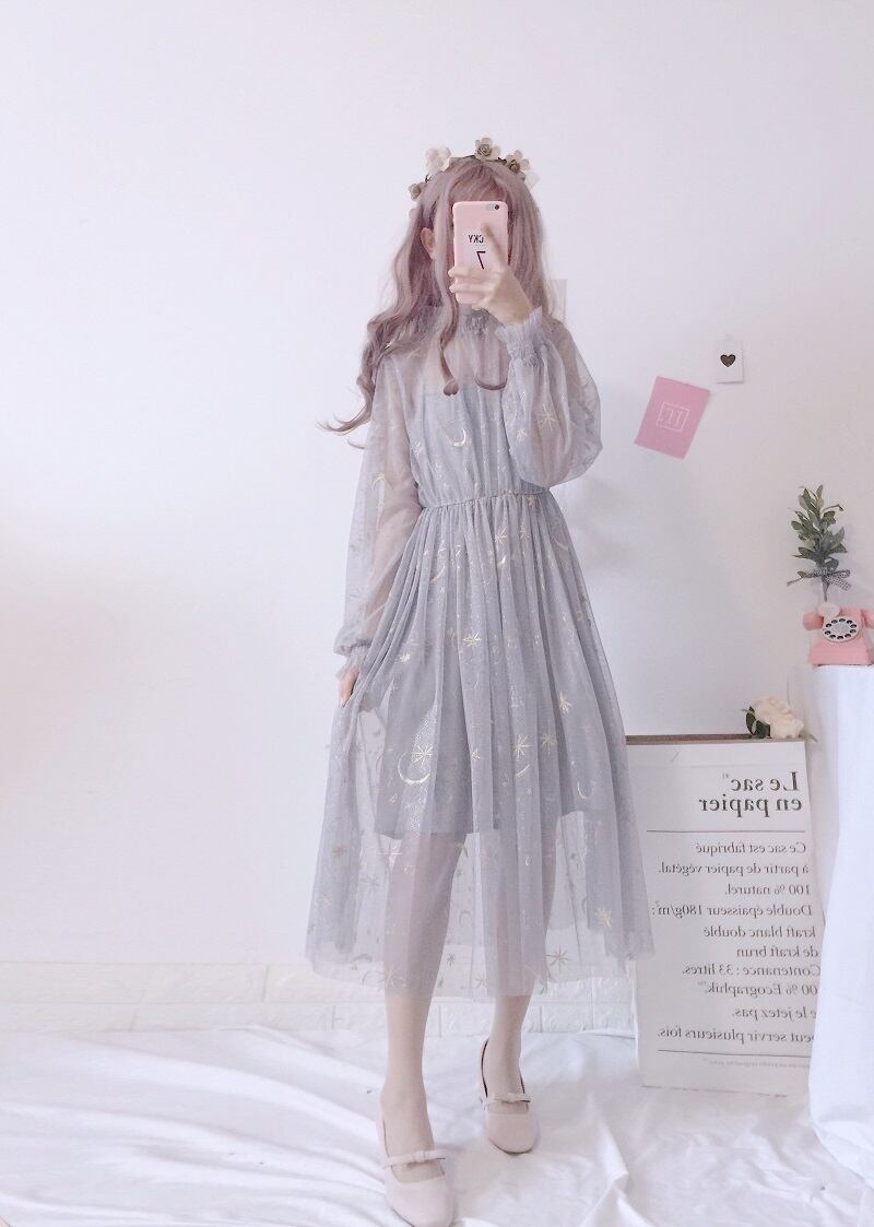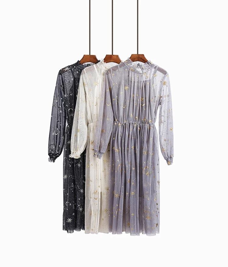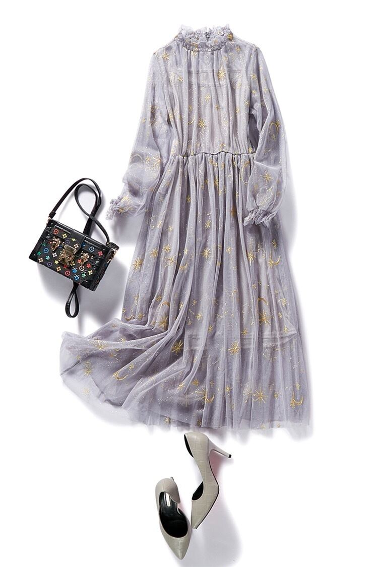 月と星の刺繍が可愛いワンピースです。