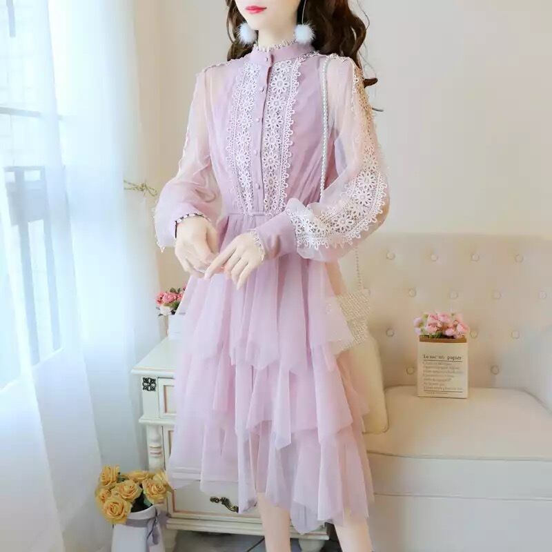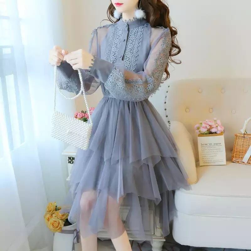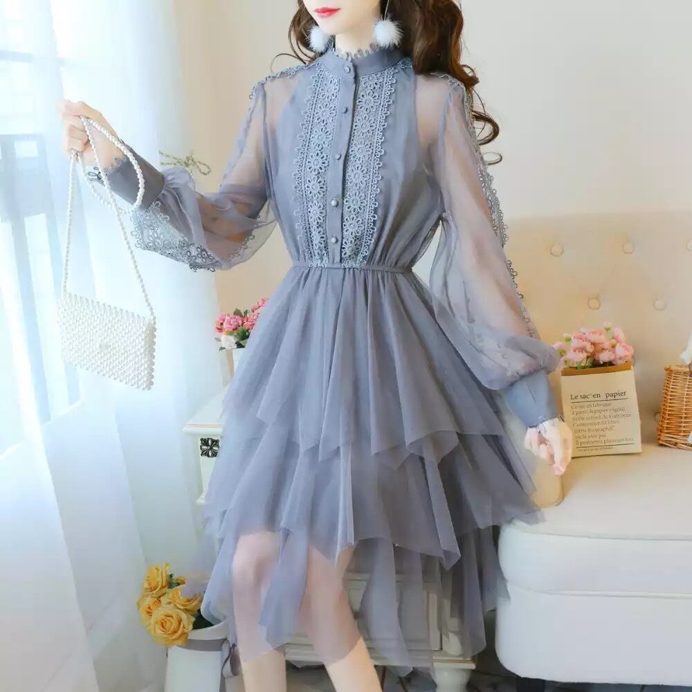 【 国内発送 d031 】チュールワンピース ミモレ丈ワンピース ひざ丈ワンピース レースワンピース 韓国ファッション シースルーワンピース