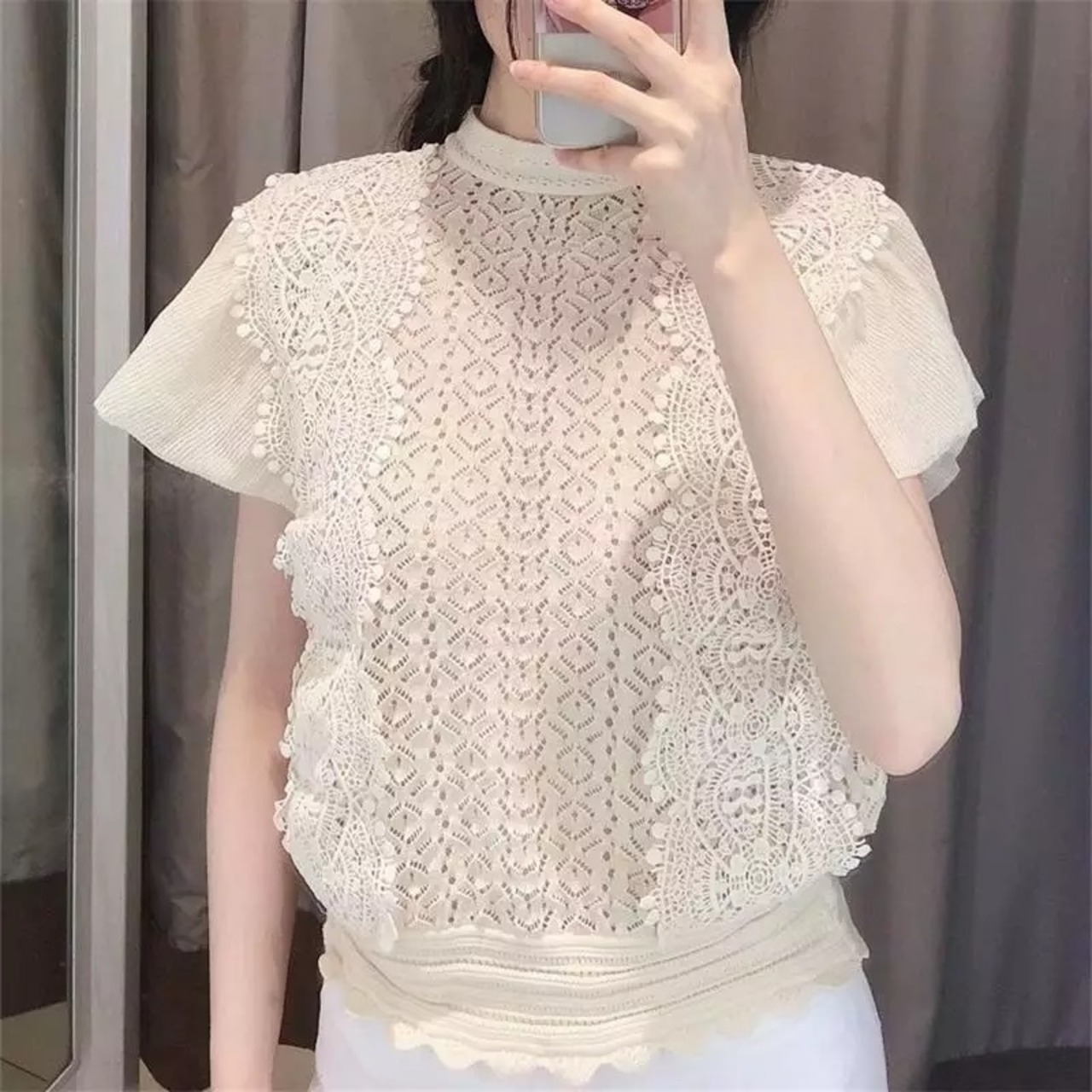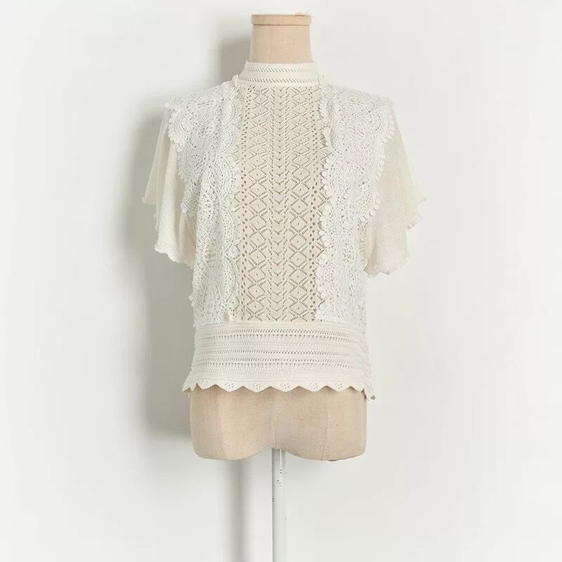 はしごレースとフリルが可愛いサマーニットです。