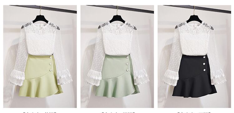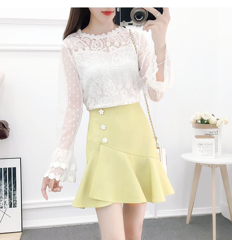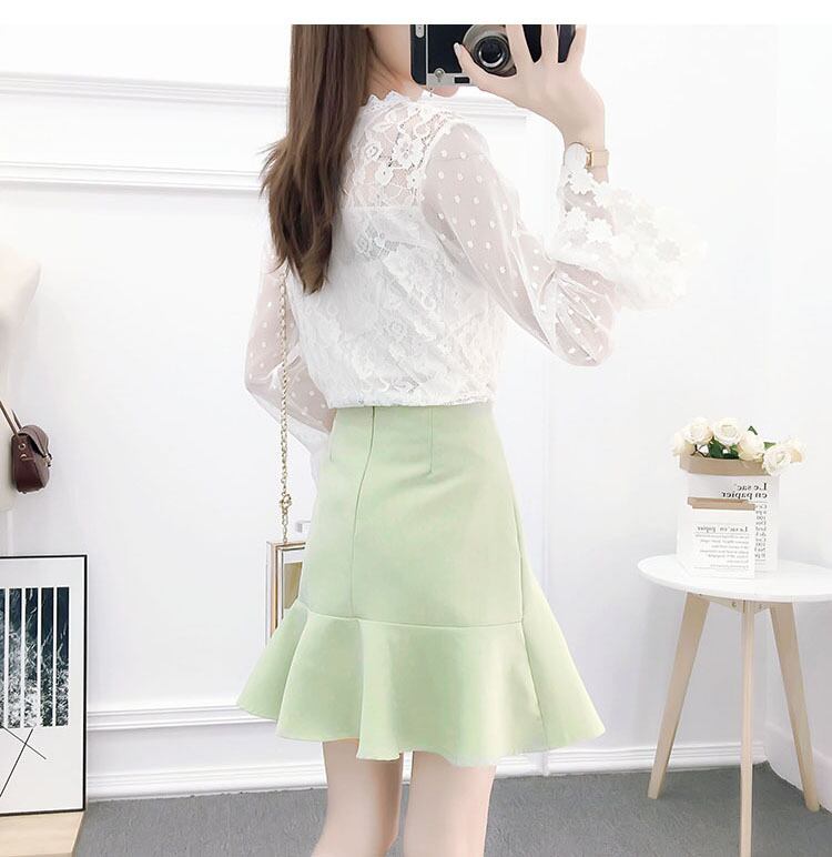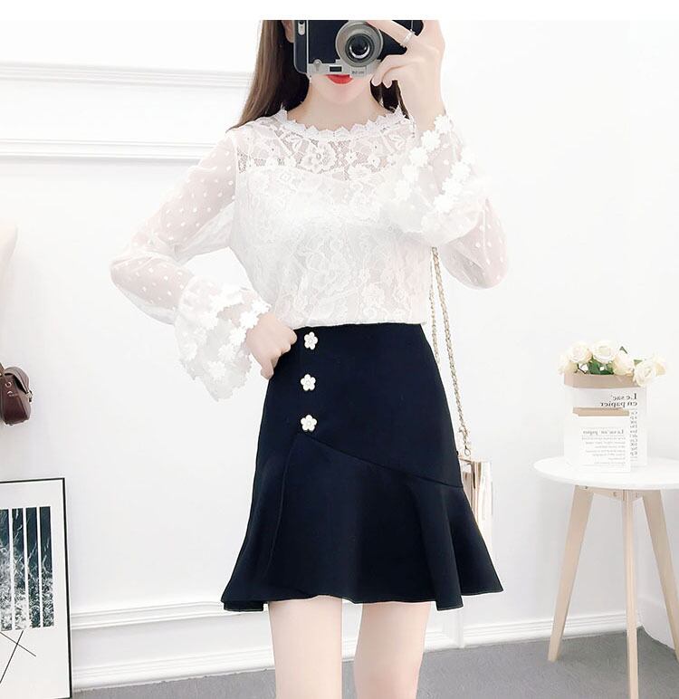 【 国内発送 s005 】総レーストップス&マーメイドスカートセットアップ レースブラウス レースシャツ マーメイドスカート ミニスカート