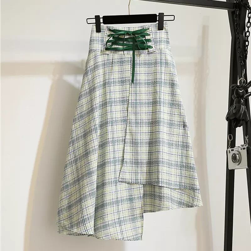 【 国内発送 s006 】オフショルダートップ&チェックアシメスカートセットアップ 大きいサイズセットアップ 大きいサイズ服 セットアップ オフショルダー チェックスカート アシメスカート 夏コーデ かわいい 安い