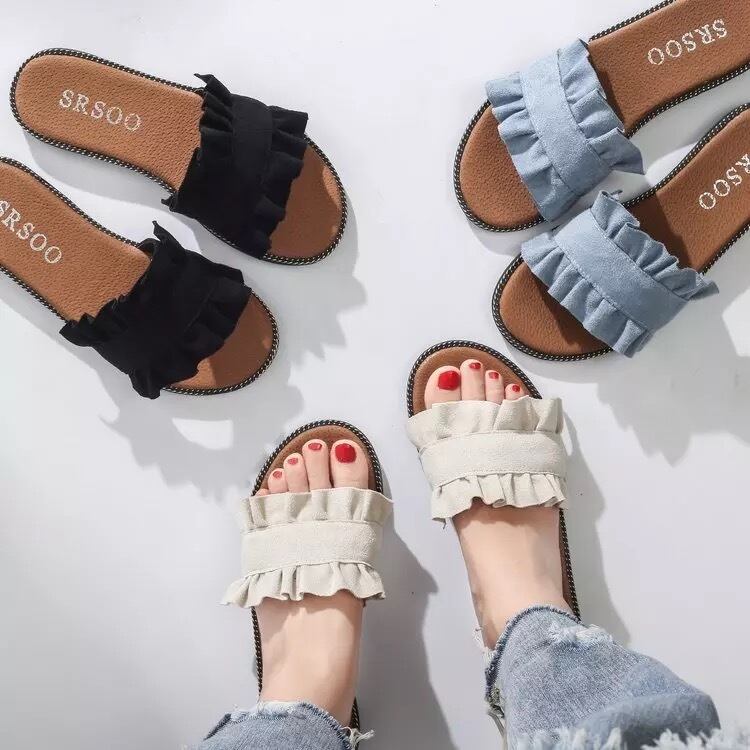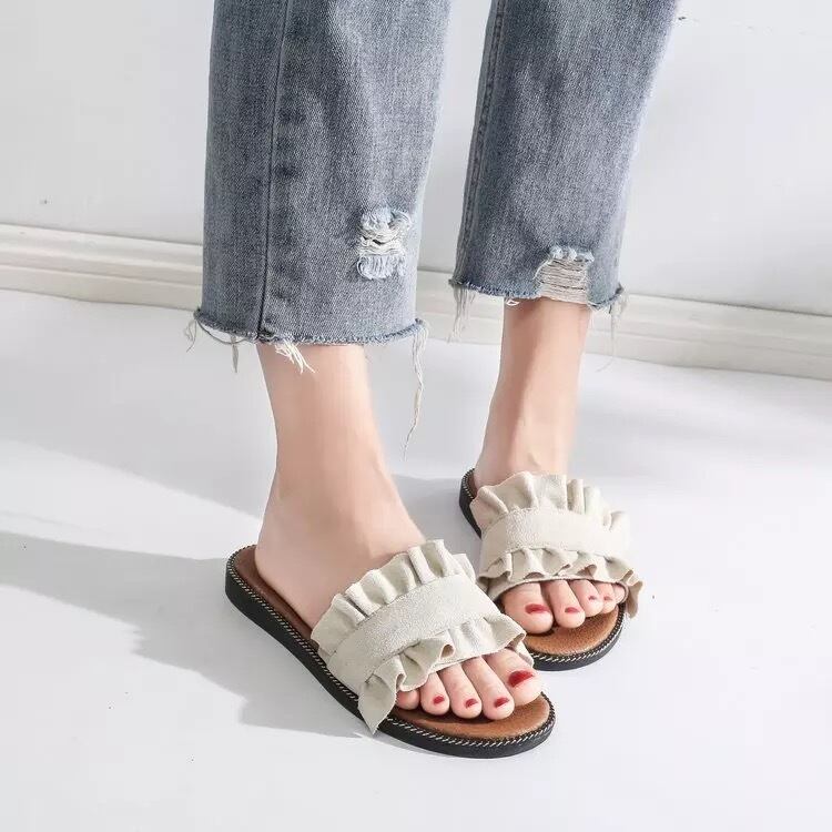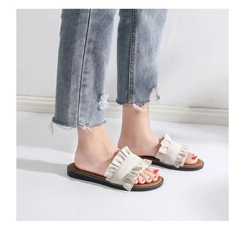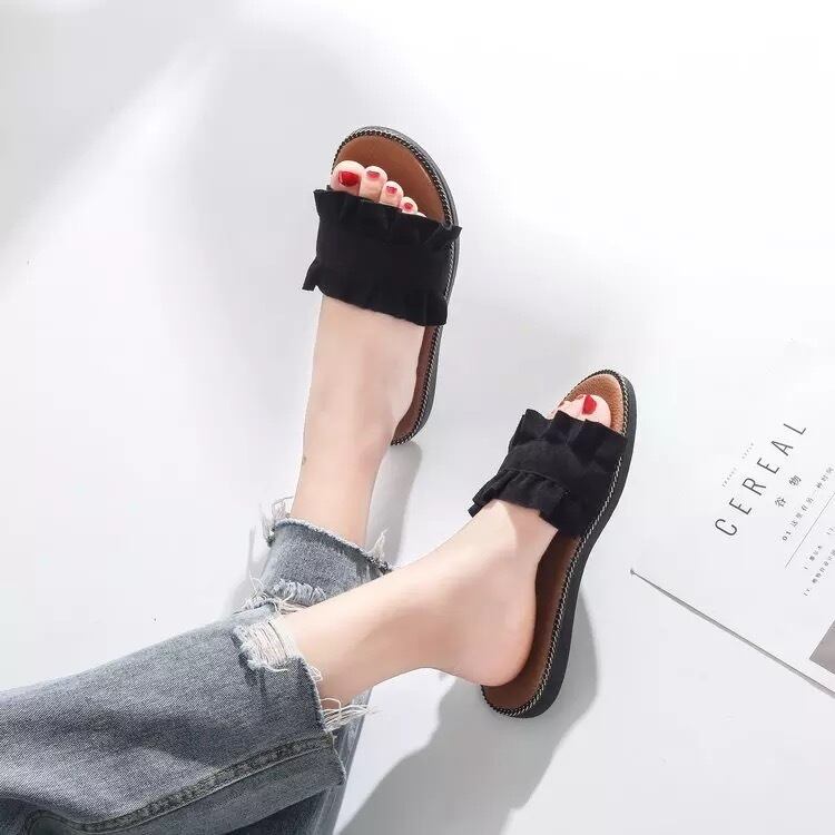 【 国内発送 k007 】フリルフラットシューズ フラットシューズ フラットサンダル サンダル 歩きやすい ミュール 楽チン 夏サンダル ビーチサンダル