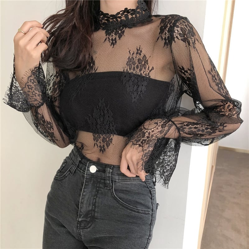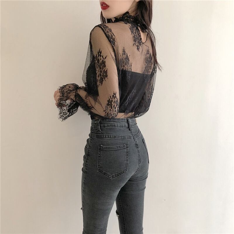 【 国内発送 009 】シースルートップス レースシャツ シースルーシャツ レース インナー かわいい 透け感 重ね着
