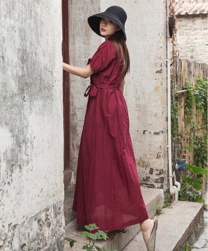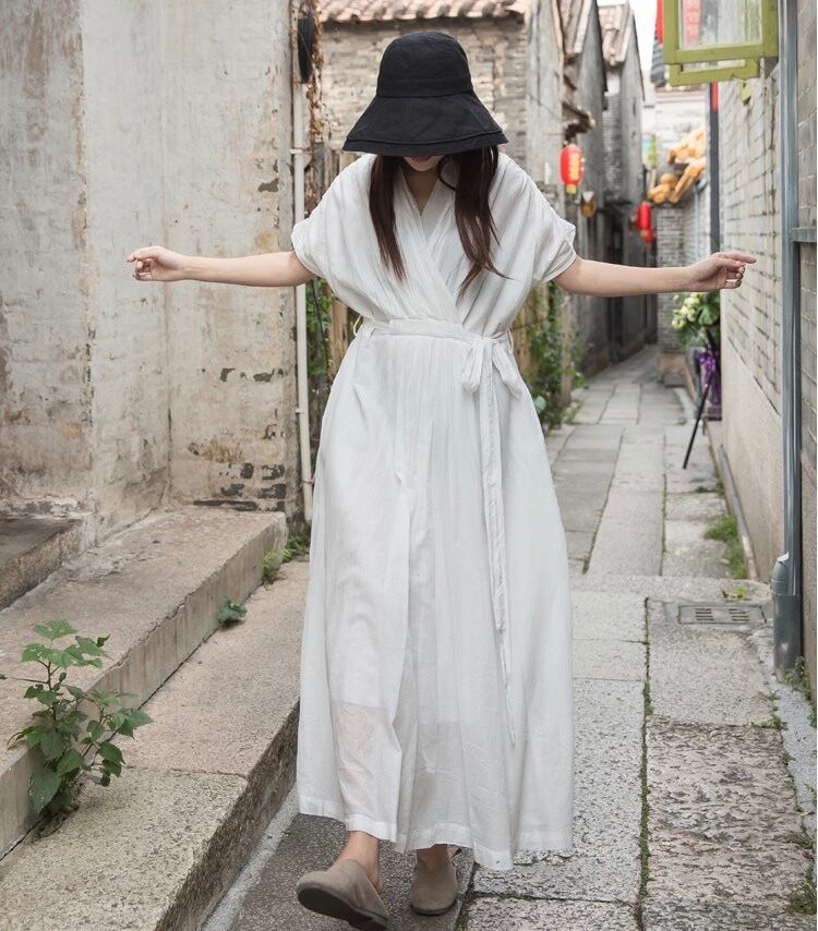 【 国内発送 d039 】ハイウエストロングワンピース ナチュラル 大人 おしゃれ