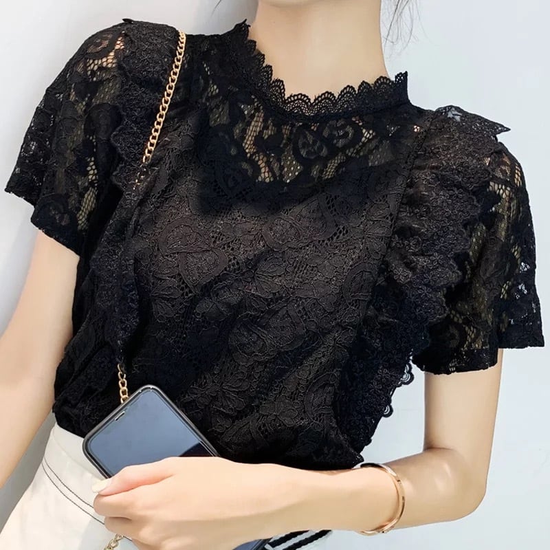 【 国内発送 大きいサイズありt008 】レーストップス レースブラウス レースシャツ 半袖 大きいサイズレディース通販 大きいサイズトップス M L 2L 3L 4L 5L