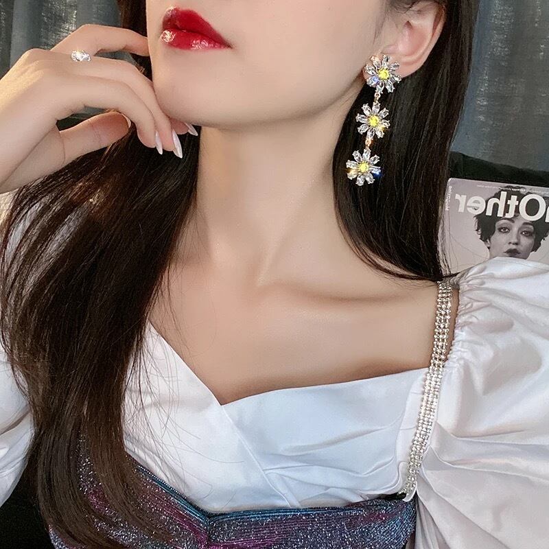 【 国内発送 a037 】フラワーキラキラピアス 花ピアス フラワーピアス 韓国 ピアス揺れる 揺れるピアス ピアス揺れるゴールド ロングピアス韓国 ロングピアス かわいい 安い ピアス通販