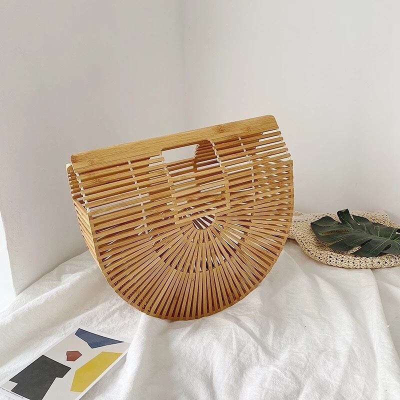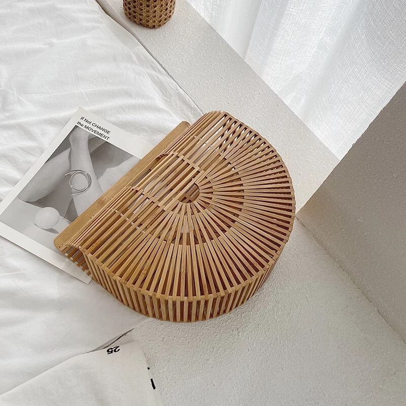 【 国内発送 b015 】ハーフムーンカゴバッグ カゴバッグ 半月型 バッグ ハンドバッグ クラッチバッグ ナチュラル かわいい マチあり