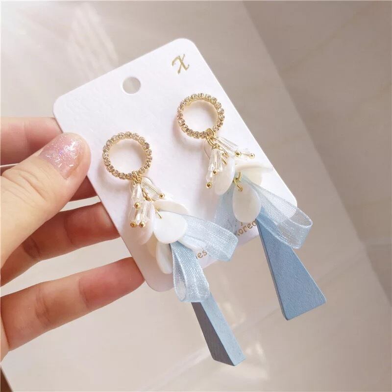 チェーンに大ぶりの水滴型ビジューが揺れて大人可愛いロングピアス。