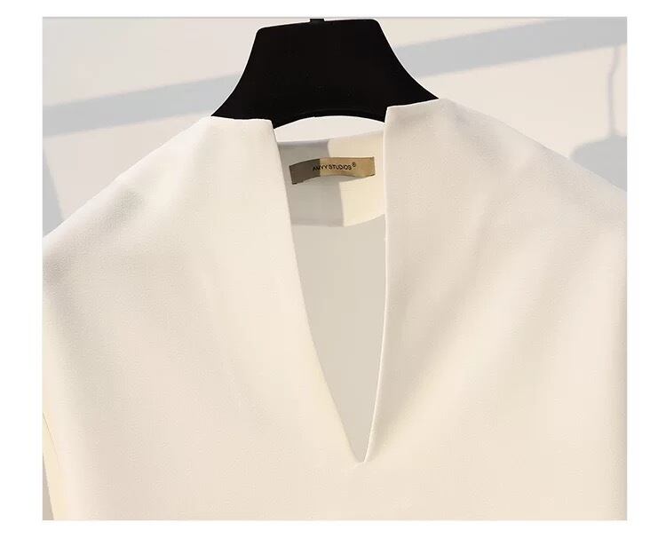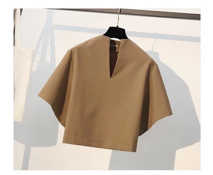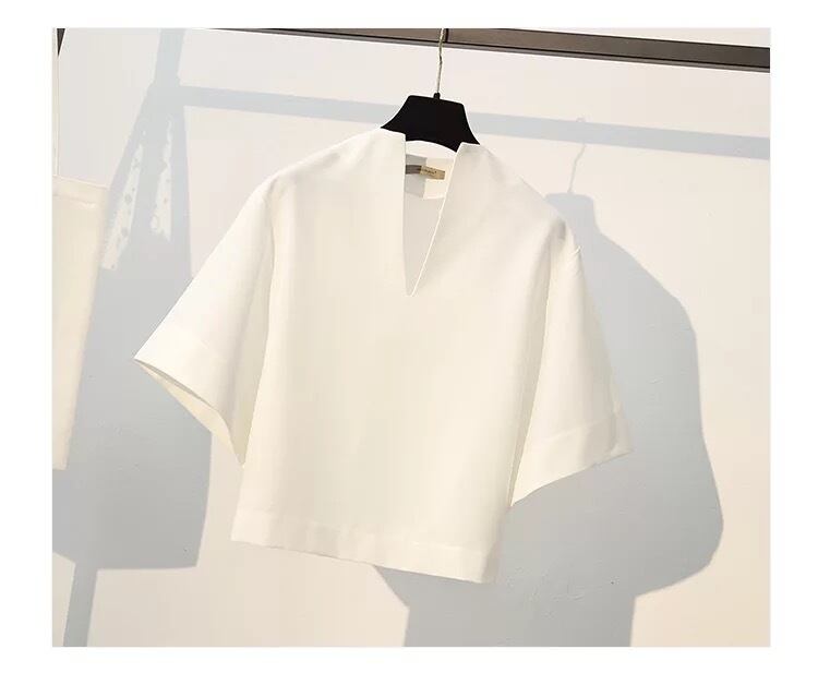 シンプルながらもVネックとひらっと揺れる袖部分が女性らしさをアップしてくれます。