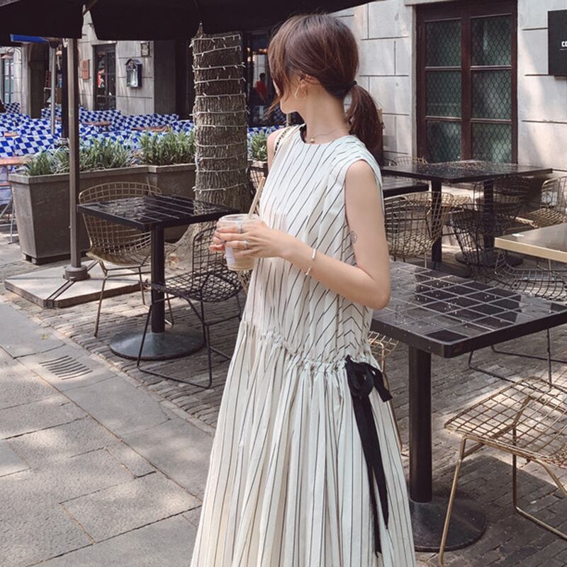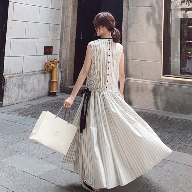 【 国内発送 d052 】ストライプ柄ノースリーブロングワンピース ノースリーブワンピース ノースリーブ 大きいサイズワンピース ワンピース フレア S M L 2L