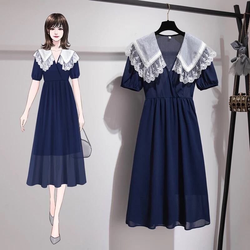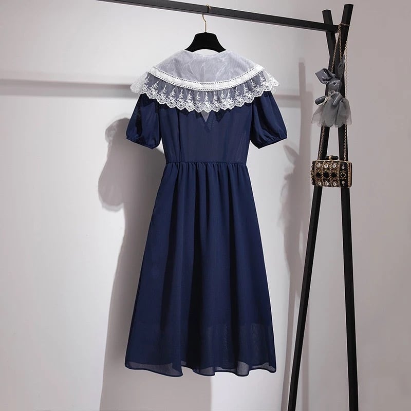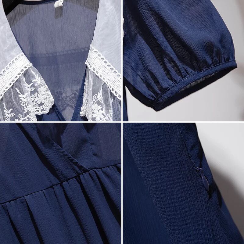 【 国内発送 d054 】レース襟ワンピース 大きいサイズワンピース 大きいサイズ通販 大きいサイズワンピースドレス 大きいサイズワンピース韓国 レース襟ワンピース