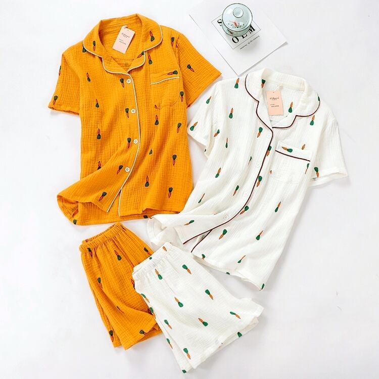 【 国内発送 r004 】ニンジン柄ルームウェア パジャマ ルームウェア 可愛い 韓国ルームウェア ハーフパンツ 半袖シャツ ニンジン 部屋着 ナイトウエア