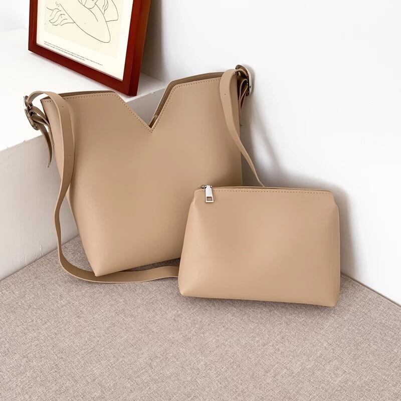 【 国内発送 b025 】ポーチ付き2wayバッグ スクエアバッグ ポーチ トートバッグ 2点セット Vカット ショルダーバッグ