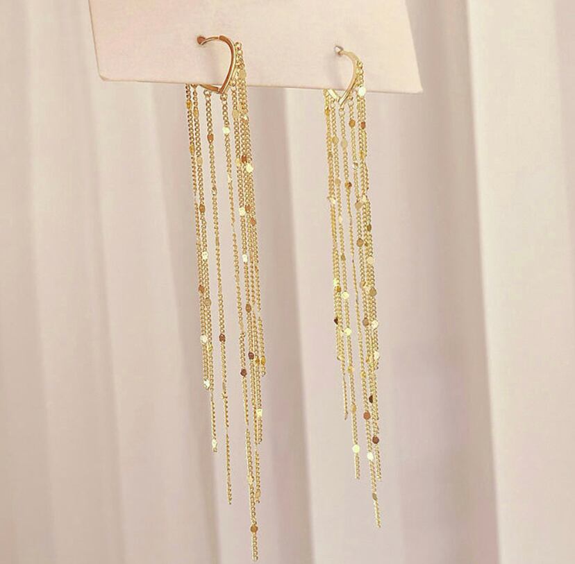 【 国内発送 a054 】タッセルピアス チェーンピアス 揺れるピアス キラキラピアス 韓国ピアス ピアス ロングピアス
