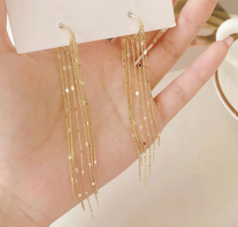 華やかなチェーンタッセルが耳元で揺れる大人のピアスです