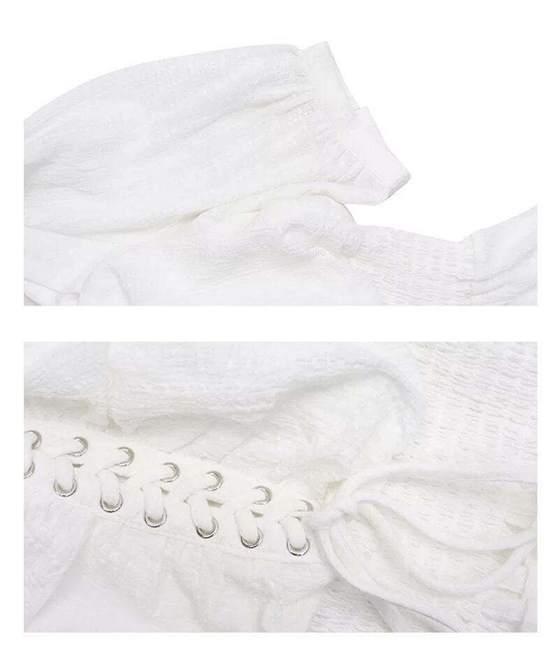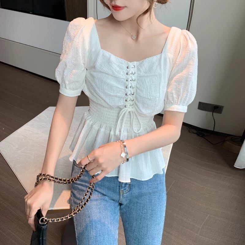 【 国内発送 t009 】パフスリーブトップス シャーリング ブラウス カットソー おしゃれ ホワイト S M L