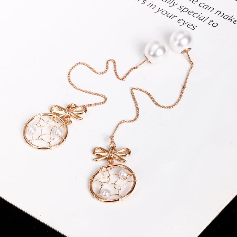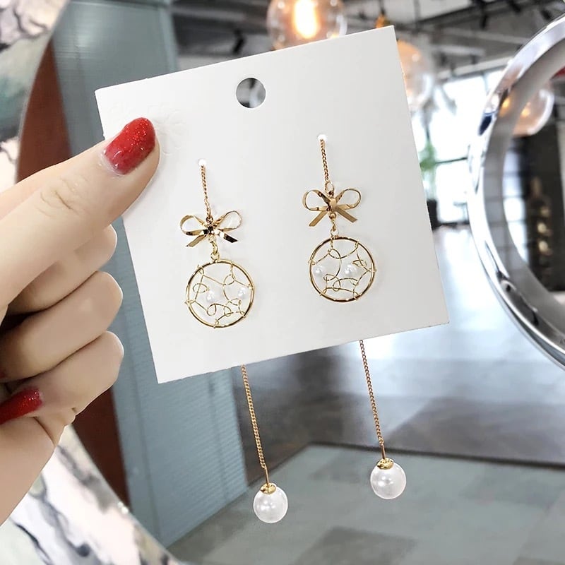 パール、リボン、合金チェーン、女子度の高いポイントを詰め込めたアメリカンピアス♪
