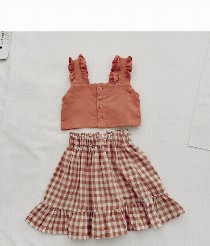 【 国内発送 キッズ001 】チェックスカートセットアップ 子ども服 キッズサイズ キッズ服 セットアップ チェック柄 タンクトップ 韓国キッズ