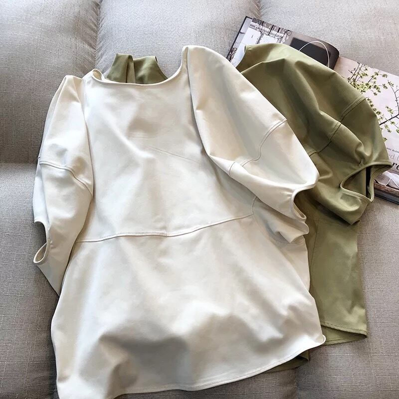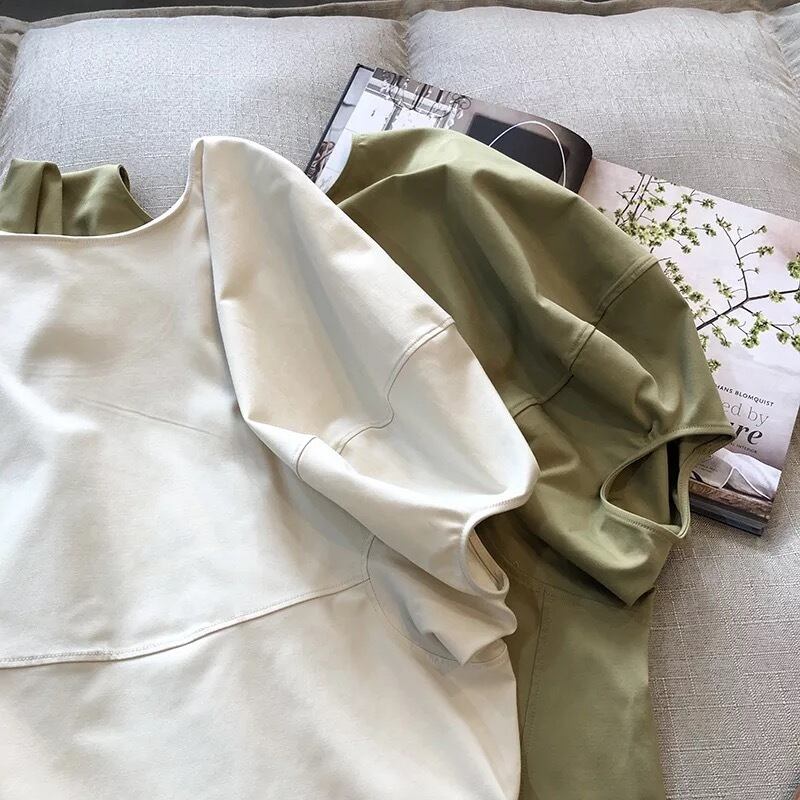 【 国内発送 t015 】オーバーサイズパフスリーブTシャツ Tシャツ カーキ ホワイト オーバーサイズ シンプル 大人カジュアル