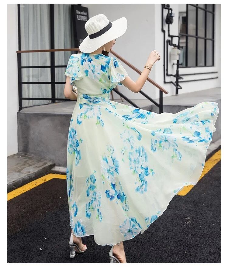 【 国内発送 d077 】花柄リゾートワンピース 大きいサイズワンピース ロングワンピース S M L 2L 3L 4L 5L 6L ネイビー スカイブルー イエロー レッド