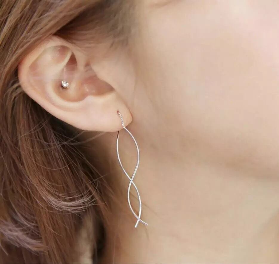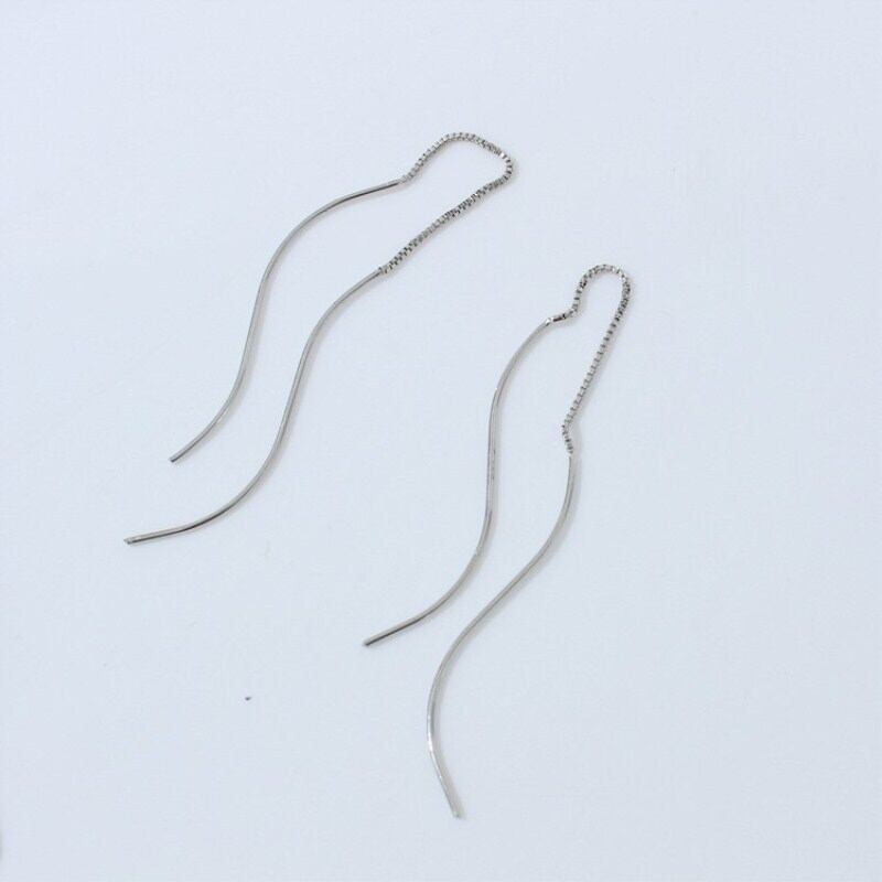 【 国内発送 a070 】ウェーブデザインピアス ロングピアス 揺れるピアス チェーンピアス ピアス イヤリング シルバー