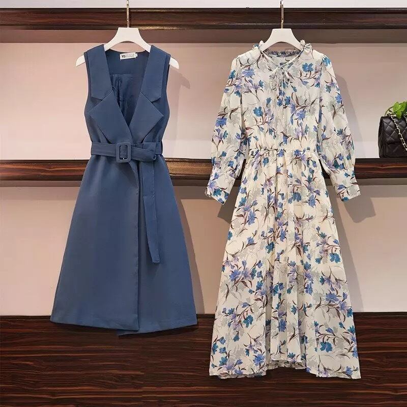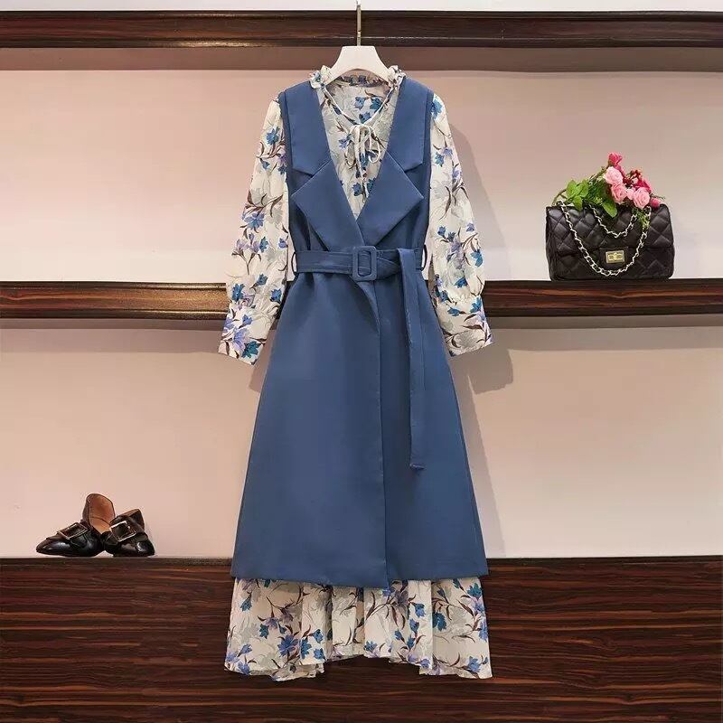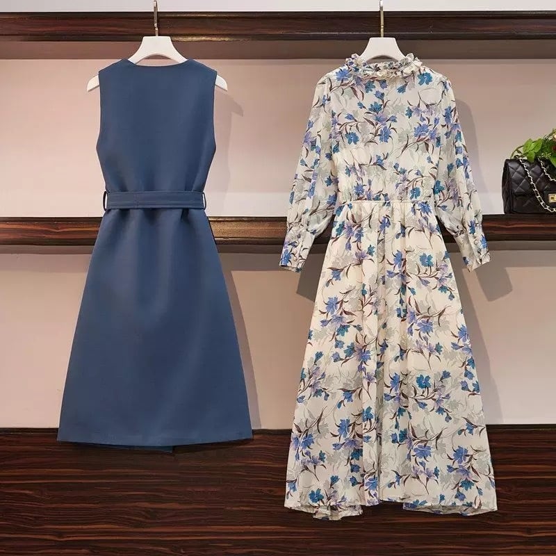 【 受注生産 s017 】花柄ワンピース ベスト セットアップ 2点セット ロングワンピース ロングベスト