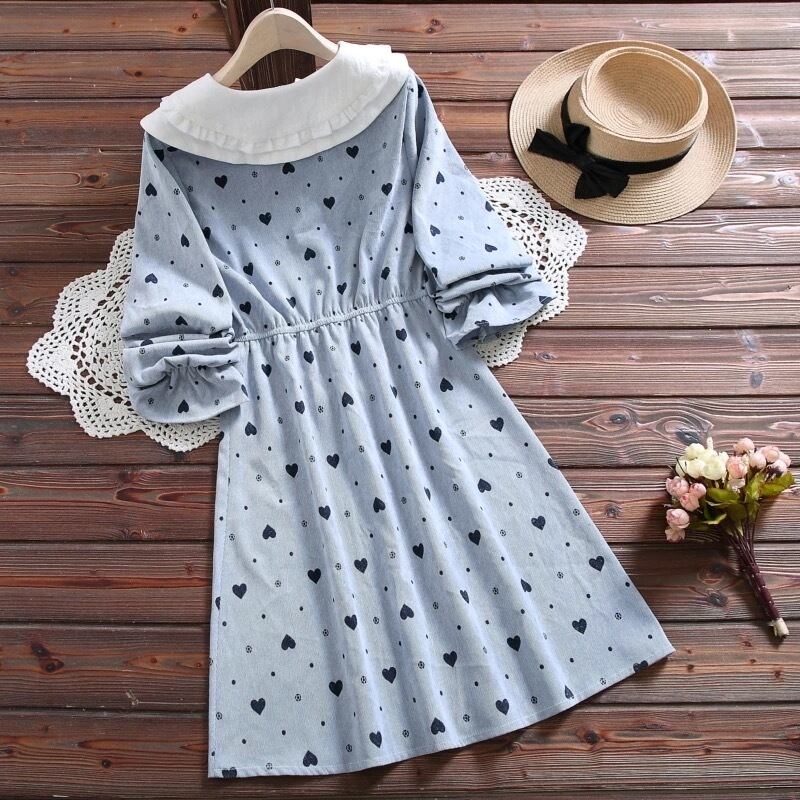 【 国内発送 d083 】 襟付き長袖ワンピース ガーリーワンピース 可愛いワンピース 秋ワンピース