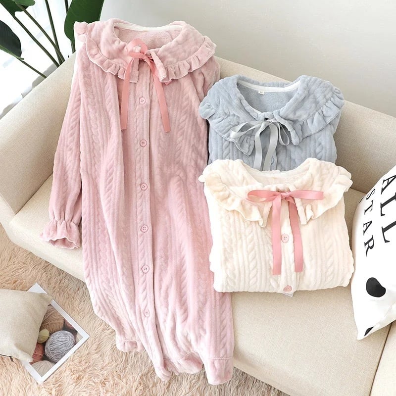 【 国内発送 r009 】ワンピースパジャマ 冬 パジャマ 可愛い もこもこ ワンピース ルームウェア 部屋着