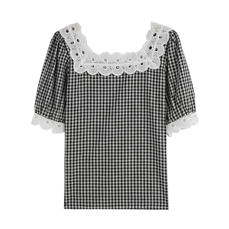 【 国内発送 t021 】チェック柄レースブラウス 大きいサイズあり レースブラウス シャツ S M L 2L 3L