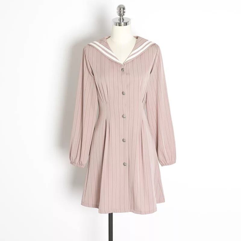 甘すぎない大人の女性でも着こなしやすいセーラーワンピースはストライプ柄で着痩せ効果あり◎