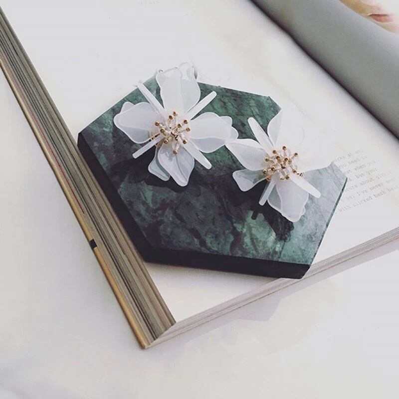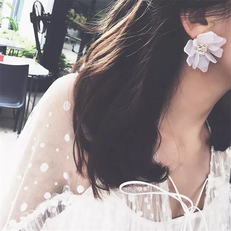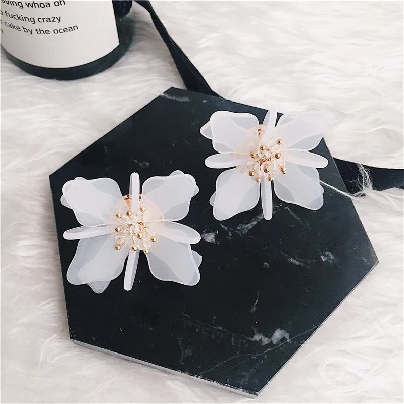 【 国内発送 a075 】フラワーモチーフピアス フラワーピアス ホワイト 大ぶりピアス
