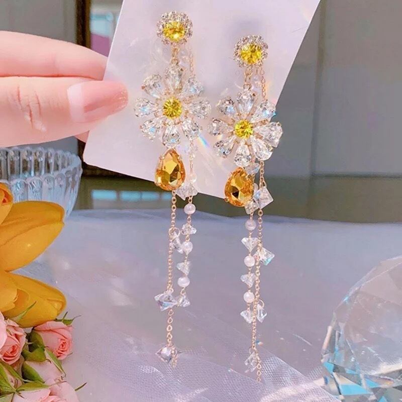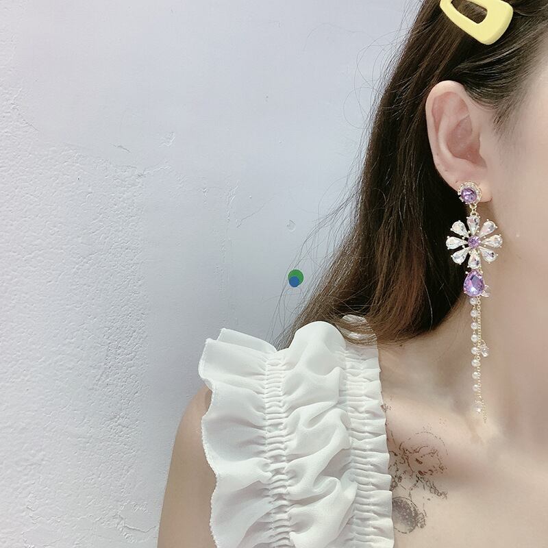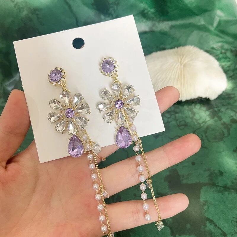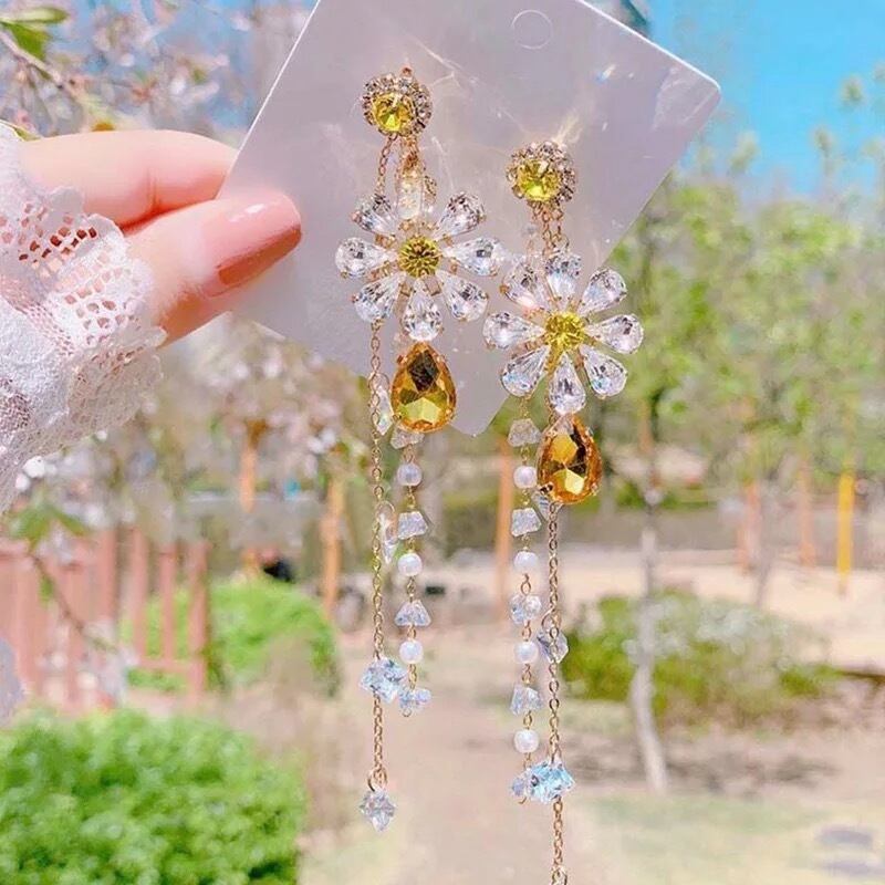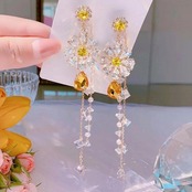 【 国内発送 a076 】キラキラフラワーピアス ロングピアス 揺れるピアス ゆらゆら キラキラ