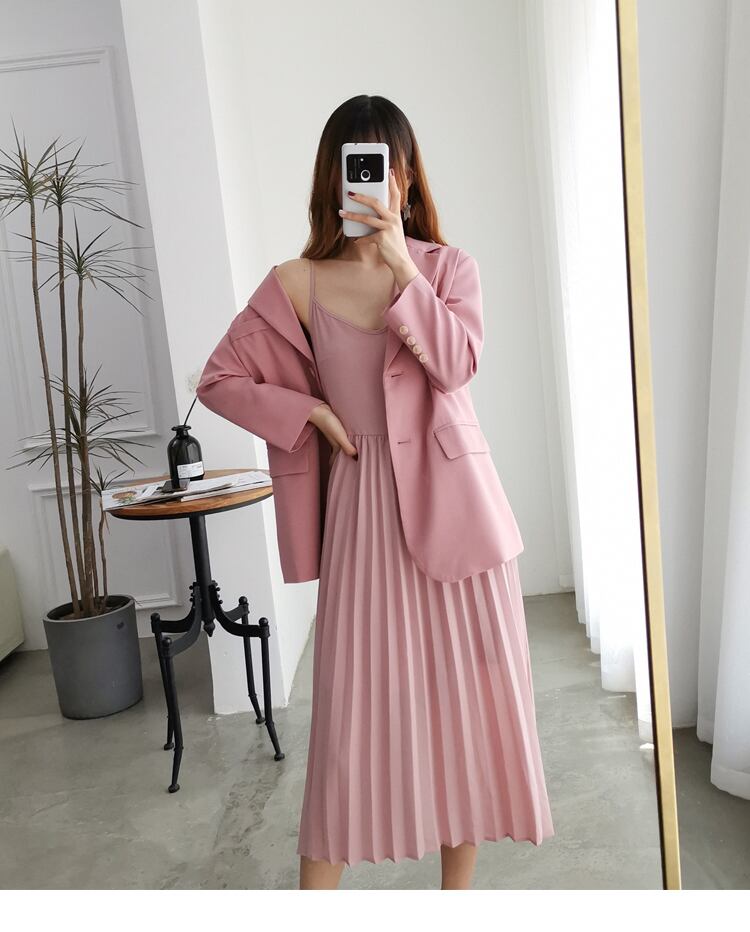 【 国内発送 s020 】キャミプリーツワンピース&ジャケット セットアップ 大きいサイズ L 2L 3L 4L 5L