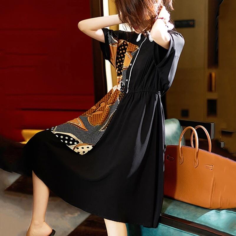 【 国内発送 d088 】デザインワンピース 膝下 ひざ下 丈 ワンピース