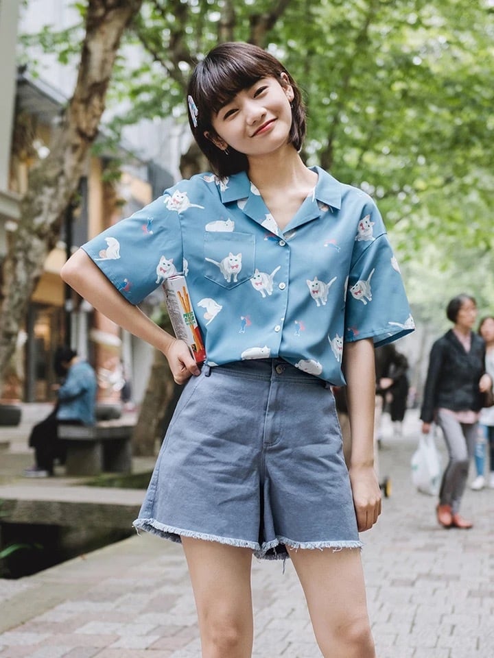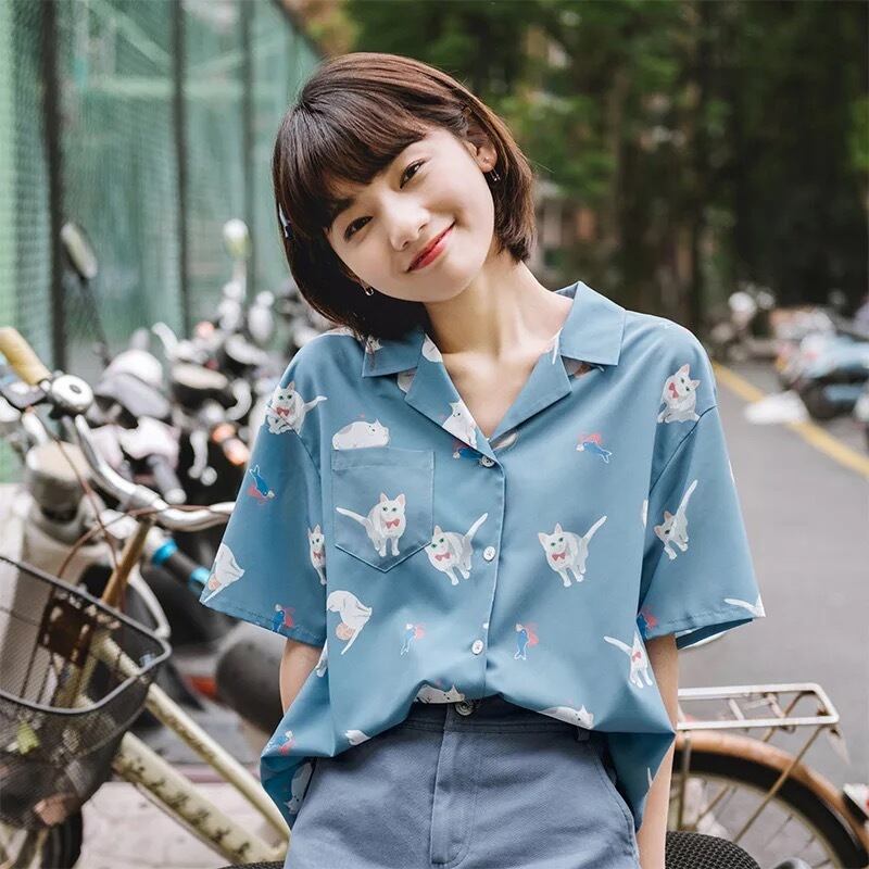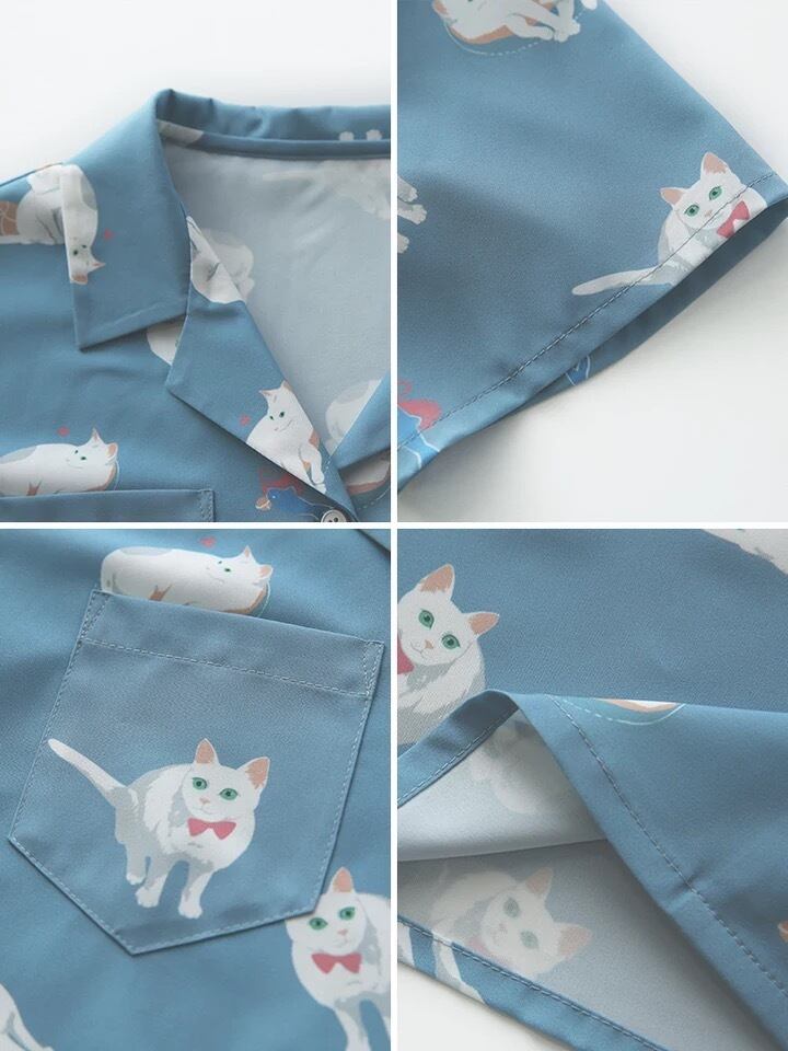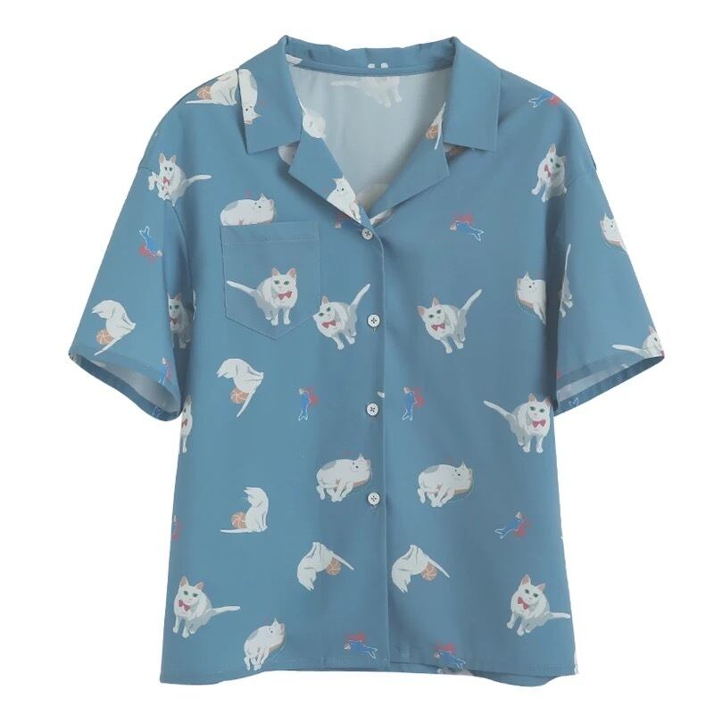 【 国内発送 t023 】猫柄シャツ カジュアルシャツ シャツ ブラウス 猫 ネコ ねこ S M L