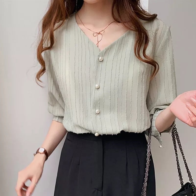【 国内発送 t024 】シフォンブラウス Vネックブラウス オフィスカジュアル シンプル