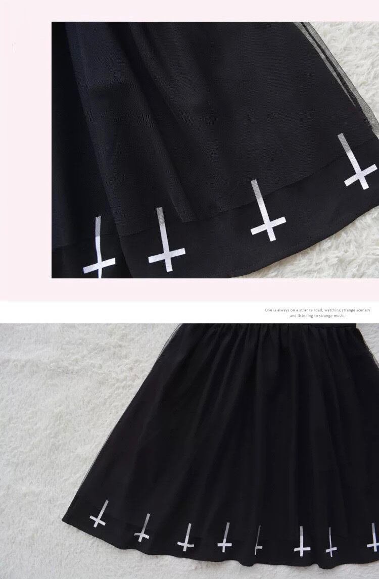 【 国内発送 d093 】十字架ブラックワンピース ガーリー ロリータ ゴスロリ ワンピース