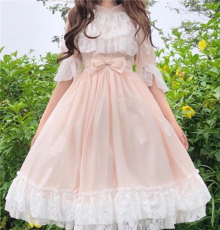 【 国内発送 d096 】ドーリーワンピース ピンク ガーリー ワンピース フリル リボン