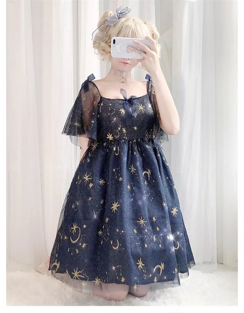【 国内発送 d098 】星空ワンピース ガーリーワンピース ワンピース ロリータ