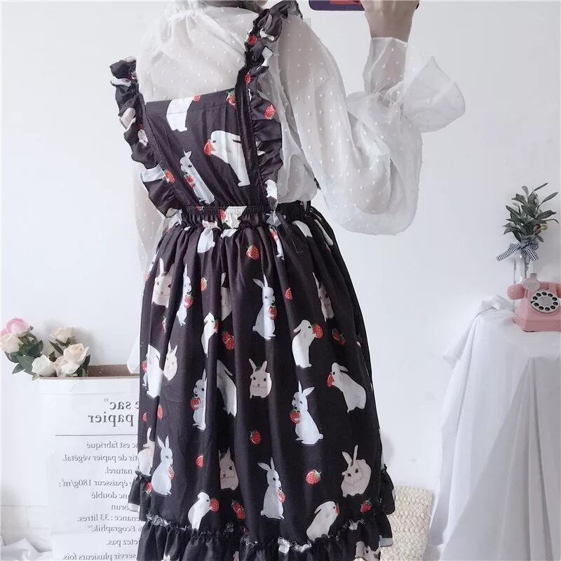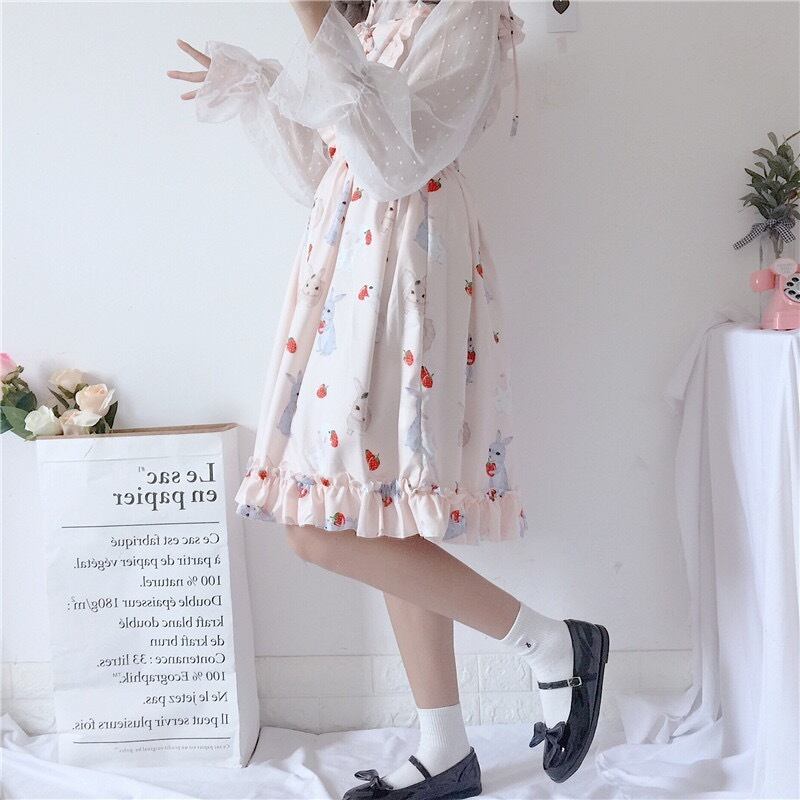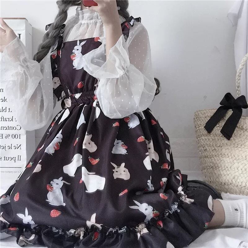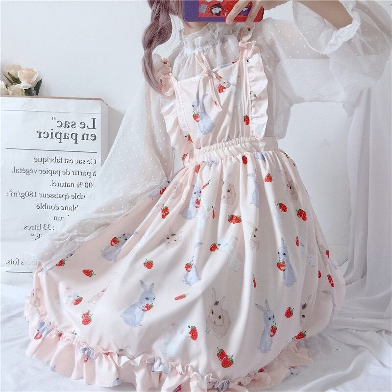 【 国内発送 s025 】シースルートップス&うさぎ柄ワンピース セットアップ セット商品 コーデ商品 ロリータ ガーリー 可愛い