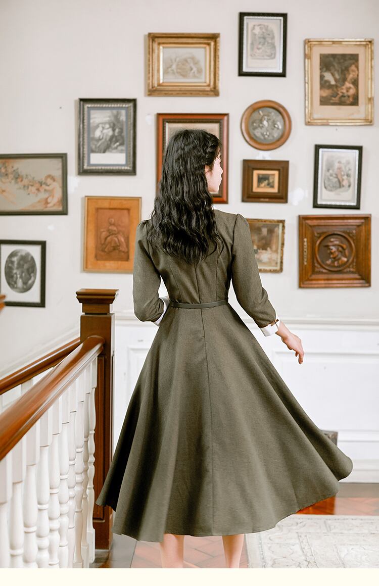 【 国内発送 d113 】 レトロロングワンピース ミモレ丈ワンピース 上品 モダン レトロ