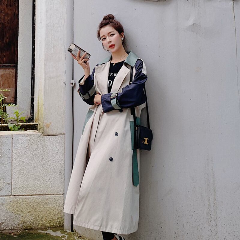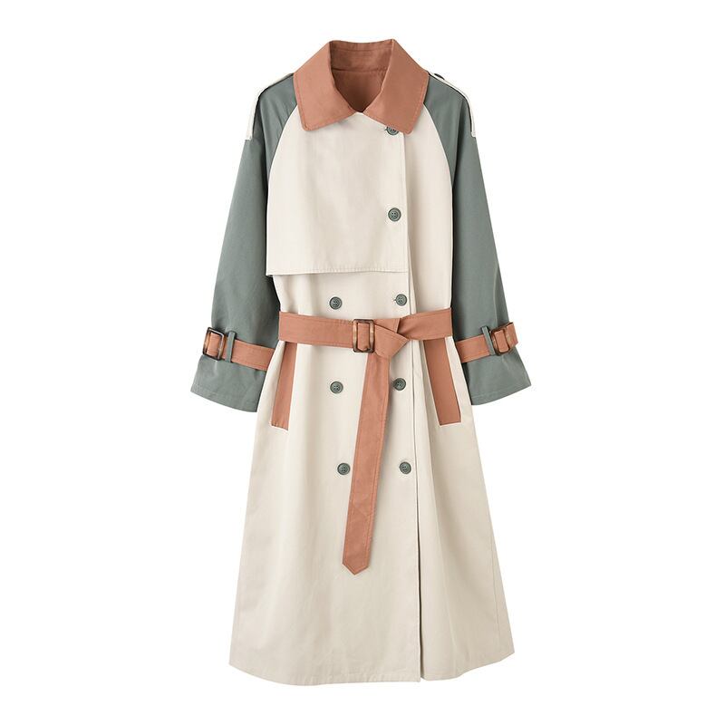 【 国内発送 t041 】バイカラートレンチコート 秋 春 コート トレンチ